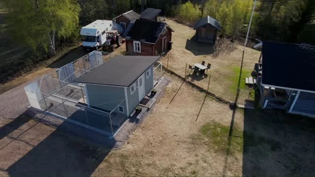 Koiratalo on rakennettu alkukesästä 2023. Koiratalo on pienempi ja siinä on huoneet 5A, 5B, 5C ja 5D. Huoneiden koko on 2,5m2. Huoneissa 5A ja 5D on oma 16m2 ulkotarha, huoneissa 5B ja 5C on 10m2 ulkotarha. Tässä rakennuksessa on tarvittaessa patteri lämmönlähteenä. Maalis – lokakuuhun kelien salliessa tässä tilassa pärjää lämmitystä kaipaavat koirat, muuna aikana tila on ns. koirille, jotka eivät lämmitystä kaipaa (läpi talven). Tämä tila sopii parhaiten pienille ja keskikokoisille koirille (0-35KG).